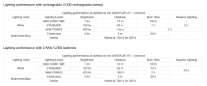 – Three white lighting levels: MAX BURN TIME, STANDARD (better power/burn time balance) and MAX POWER
